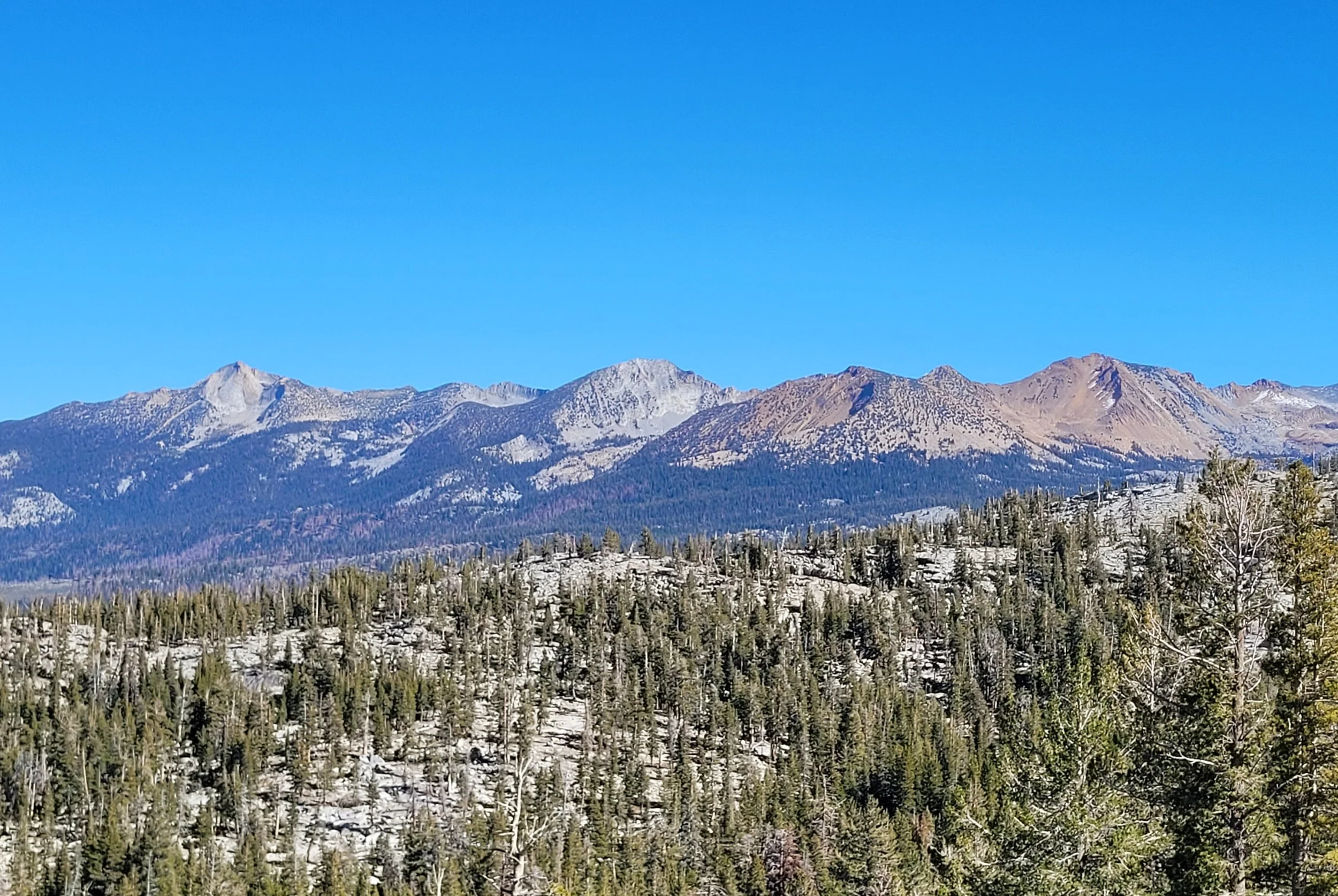 Around the 2.4 mile mark, if you look east you will see Clark Range, including Mount Starr King (9,079 ft), Mount Clark (11,523 ft), Gray Peak (11,567 ft) & Red Peak (11,657 ft).